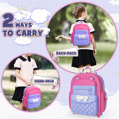 2-in-1プラスチックペットケアセット子供用グルーミングおもちゃ子犬犬用バックパックふりプレイ & 就学前ペットキット女の子用