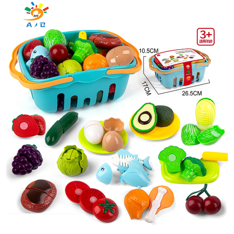 AJB ABSプラスチック材料模造野菜フルーツバスケットカッティングキッチンゲームセット子供用おもちゃ